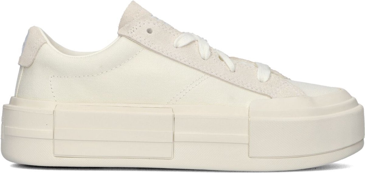Stap in stijl met de CONVERSE CHUCK TAYLOR ALL STAR CRUISE lage sneakers voor dames. Deze witte sneakers zijn perfect voor een casual dagje uit of een relaxte wandeling in de stad. Dit model is gemaakt van wit canvas met panelen van beige suéde. De binnenvoering is gemaakt van textiel en leatherlook en heeft een vastvoetbed. De rubberen plateauzool van 5 cm maakt de sneaker extra tof en biedt ook nog is grip en stabiliteit. Met deze sneakers ben je helemaal klaar voor elke gelegenheid. Laat jezelf stralen en voeg deze must-have schoenen toe aan je collectie!