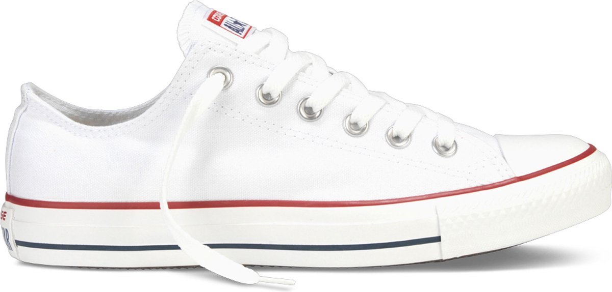 De CHUCK TAYLOR ALL STAR OX DAMES is de meest iconische sneaker van het merk Converse! Deze witte klassieker is perfect om jouw persoonlijke stijl mee te laten zien en is eindeloos te combineren bij al jouw zomerse outfits. De rubberen neus en stootrand geven deze schoen de kenmerkende Converse-look. Extra leuk zijn de rode en donkerblauwe streep in de zoolrand en de merklabels op de tong en de hiel. Deze lage sneaker is uitgevoerd in canvas met een canvas voering, een vast voetbed en een rubberen zool met grof profiel.